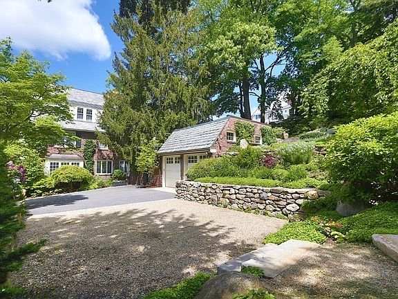 Waban. This magnificent English Revival residence is set on a sprawling three quarter acre spectacular lot with lush grounds overlooking the Brae Burn Country Club. A beautiful walkway to the stately front door opens to a grand foyer with an oversized living room with detail, fireplace, and access to sunroom/office; gracious dining room opening to contemporary kitchen; and family room. An elegant staircase leads to the second level with a substantial primary bedroom suite with fireplace, sitting area, bathroom, and walk in closet; three other bedrooms; and two full bathrooms. The third floor has two bedrooms and a bathroom. The lower level, with private entrance, has a renovated guest or au pair suite with full bathroom and office. This exquisite home has a slate roof, lots of windows, hardwood floors, gas systems, and detached two-car garage. The manicured grounds are embellished with patio, koi pond and waterfall, mature plantings and flowers. Near Waban Centre, T, and Angier School.