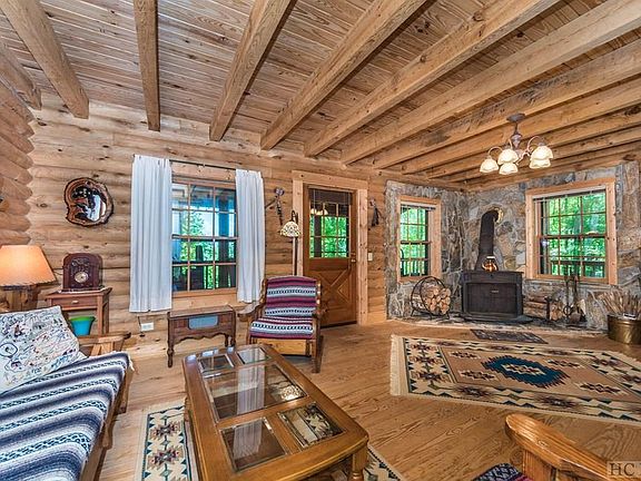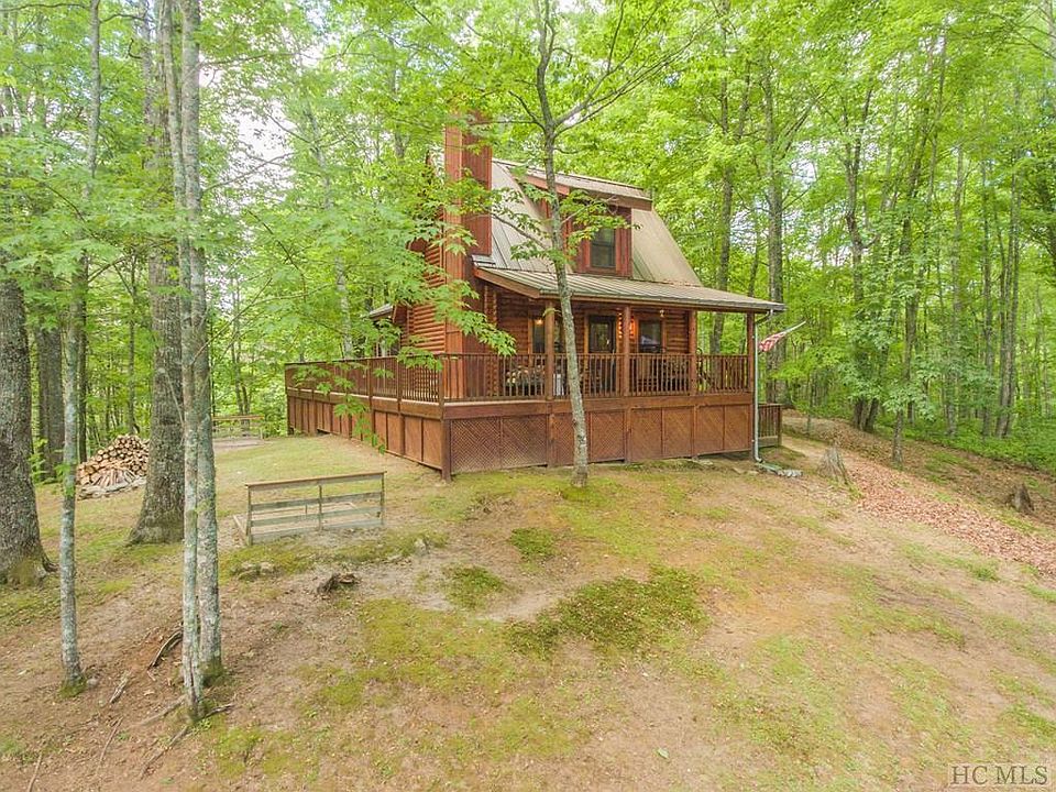 This sweet cabin is serenity at its finest. Located in the Blue Ridge Mountains on 4.61 beautiful usable acres with a great mountain view that could be opened up wider, it is the perfect place to get away from the hustle and bustle of city life. The elevation of the cabin is 3800 ft and is located at the end of the cul-de-sac upon a knoll. There is plenty of gentle land to use. This community allows horses and adjoins the 6300 acre National Forest for riding. The solid log cabin has been kept pristine by its owner and offers a well thought out floor plan. The great room features a wood stove to warm up by, and plenty of nooks to put a desk or game table. The eat in kitchen has cathedral ceilings where you can see the beauty of the architecture. There is a spacious bedroom on the upper level with room to add a bathroom if desired. Being at the end of the road affords privacy so you can sit on one of the many covered or open decks while you enjoy the sights and sounds of peaceful nature surrounding you. Laurel Falls is located in Glenville, NC, and offers beautiful Robinson Creek for trout fishing. There is a well appointed grocery store in the village of Cashiers, NC that you can be at in 1/2 hour. Enjoy one of the many gourmet or family style restaurants offered in the area or shop at the boutiques that line Highways 64 and 107. There are free concerts every Friday in season at the crossroads of Cashiers in the Village Green. The town of Highlands, NC is 20 minutes from Cashiers, so you will never run out of things to do here. So, what are you waiting for? Call today for your private showing.