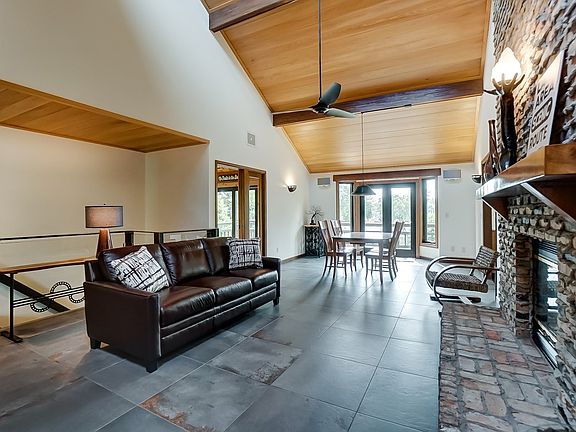 One of the top 5 lots in North Snow Bay with a view all the way through the main lake. The stunning exterior of this quality home is finished in Nichiha fiber cement and features Marvin windows each thoughtfully designed for their use; patterned privacy glass, combinations of awning and casement and large panel to take advantage of the lake breezes or an afternoon rain and, of course, the view. Wide, black stained Cedar trim brings it together along with real cedar shakes at the entry and the lake side. A 30 x 70 concrete drive delivers you to a three bays wide, heated garage having lake views as well. A massive floored attic above the garage offers a bounty of storage. Inside, the weeping mortar and brick fireplace stretches nearly twenty feet to the peak of the cypress ceiling, it's colors blending with the concrete styled porcelain floor. The lakeview windows sport retractable screens for an uninhibited view of the sprawling front lawn and waterfront. The kitchen is equipped with week-old appliances and also enjoys the view. A comfortable sunroom has cedar walls and a vaulted ceiling with a Marvin sliding door to the full-width deck. The first bedroom has an attached bath and walk-in closet. The second main floor bedroom (used as an office) has rich, warm, walnut paneling and floor to ceiling windows. A lower, walk-out level offers a custom steel and glass stairway and another bedroom suite with it's own full bath having an oversized shower tiled in real cut stone, and a contrasting heated stone floor. A Colby Clauss concrete sink is also featured. The generous family room has a Hearthstone wood stove with fieldstone surround. There is a full-width rec area with room for a couple of sleeper sofas for extra guests. One wall is plumbed for a bar. A safe room rounds out the lower level. There's a patio under the deck that stays shaded from the summer sun. The yard is wide enough to drive a truck right down to the beach and drop off the lawn chairs by the fire bowl, nestled in a wall of split stone. An aluminum pier is included. All majors furnishings (except owner made tables and benches), washer and dryer, are negotiable. Attached Sonos sound system and smart tv/Sonos sound bar included. Large organic garden, lake-fed lawn, landscaping and garden irrigation system, too! Neat, tidy and turn-key, settled alongside the old North Snow Trail. Twenty two stately pine trees line the yard offering unmatched privacy. Snow Lake, Lake James chain of lakes.
