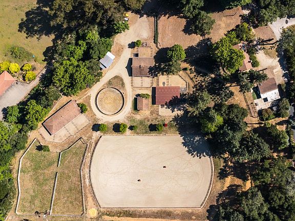 Marvelous equestrian / rancher opportunity. Private setting with professionally designed arenas, round pen, paddocks and stables. Nestled peacefully on 5.2 acres this is a dream location and setting for the equestrian enthusiast. 90 x 60 meter arena with power and water amenities with new Olive Spring sand. Multiple barns and stables for up to 12 horses, inclusive of oversize for brood mares or custom usage. Main barn with multiple offices, complete video/security camera installation and wifi /antenna for all of the property viewing. Custom tack storage, with all finished walls in barn. Main house with custom kitchen & living room, 1 bedroom. ADU with expansive carport and garage storage including 1 bedroom / kitchen studio design. Added studio for caretaker / trainer / ranch hand in detached stable building. Private well with Ozone Water Treatment & 5000 gallon storage tanks. All hot water provided with instant demand appliances. Custom refrigerator and ovens in main house . Must see!