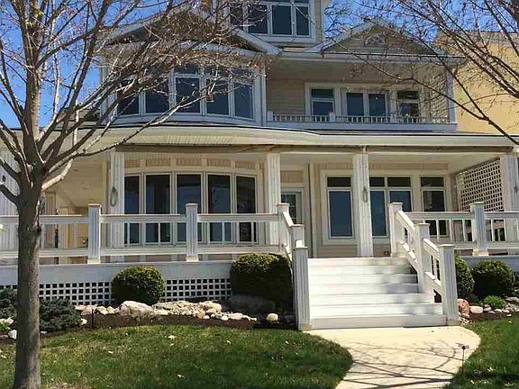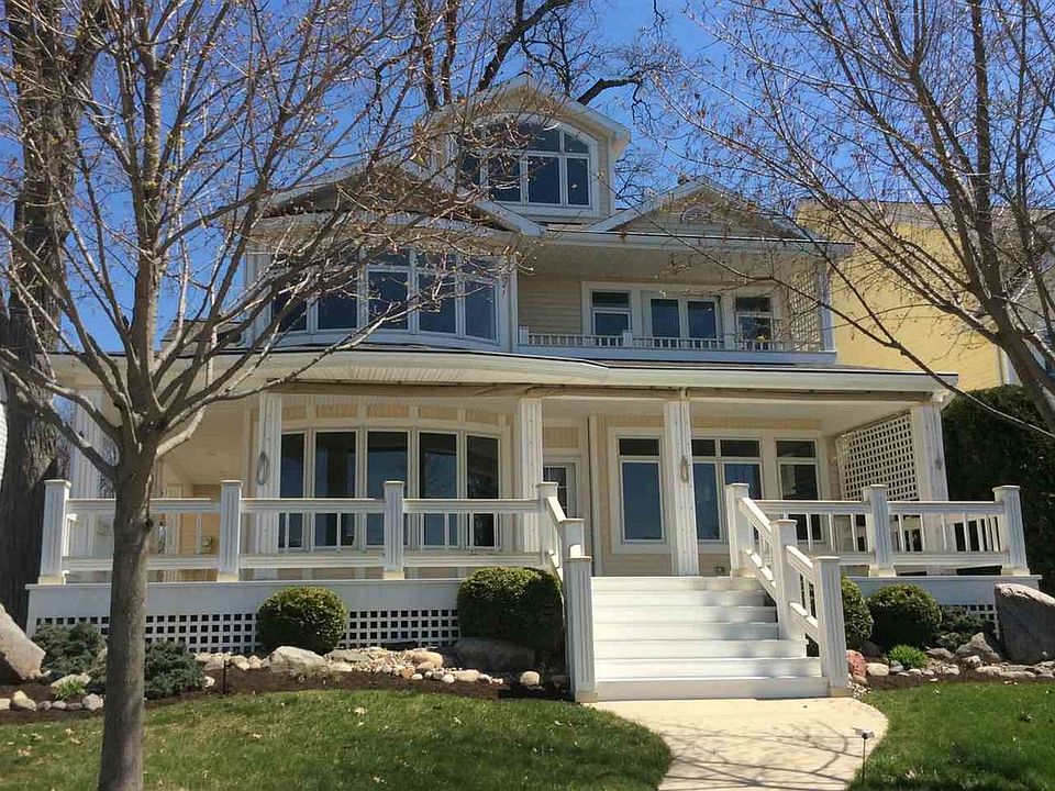 This picture perfect lake front home on Crooked Lake's Gold Coast offers an excellent swim beach and breathtaking lake views from nearly every room! The open concept main level features a great room with stone hearth gas fireplace and custom built-ins adjoining the dining area & appealing kitchen with all new appliances. The main floor conveniently offers a large bedroom and full bath plus laundry & storage entryway. The second level loft is large enough to easily serve as a family room or play area. A dream master suite features a window seat & private balcony overlooking the lake, dual vanities, custom tile shower, and sprawling walk-in closet with organizers. An additional bedroom on the second level also opens to the lake front balcony. The third floor loft is perfect to accommodate many guests or be a quiet getaway. As beautiful inside as it is outside - you may relax on the wrap around porch, the lakeside patio or new 90' dock. New on the property are a range/stove, refrigerator, microwave, water softener, water heater, and dead bolts. Newly installed drainage system for the backlot keeps the property usable at all times, especially during heavy rain events.