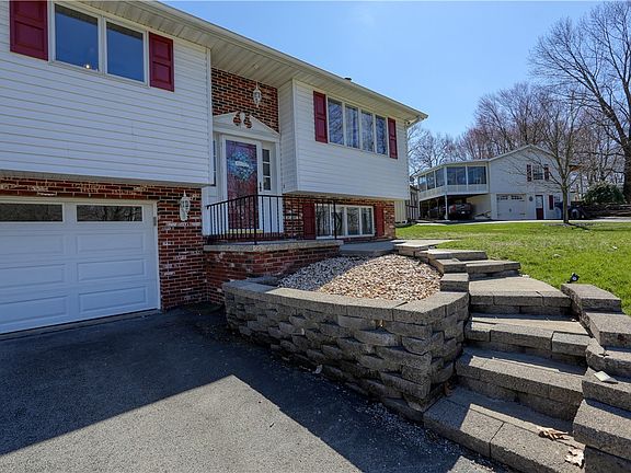 This beautifully updated 3 bedroom, 2 full bath split entry home in the desirable Wurtemburg Heights plan is all ready for its new owners! The attractive new LVP flooring was installed throughout the main level less than 6 months ago, updating the look and offering ease of maintenance. The addition of a kitchen island provides more seating options, storage & workspace in the already upgraded kitchen. A big primary bedroom easily accommodates a king-sized bedroom suite and offers dual closets.  The outstanding finished lower level hosts a family room with wood-burning fireplace and another full bath!  Newer mechanicals throughout - furnace and central air new in 2020, HW tank in 2023.  The spacious two car integral garage offers built in shelving and additional storage.  2 parcels combine to provide lots of level yard space, including a storage shed. The back deck looks out over the big backyard - just come hang your hammock!