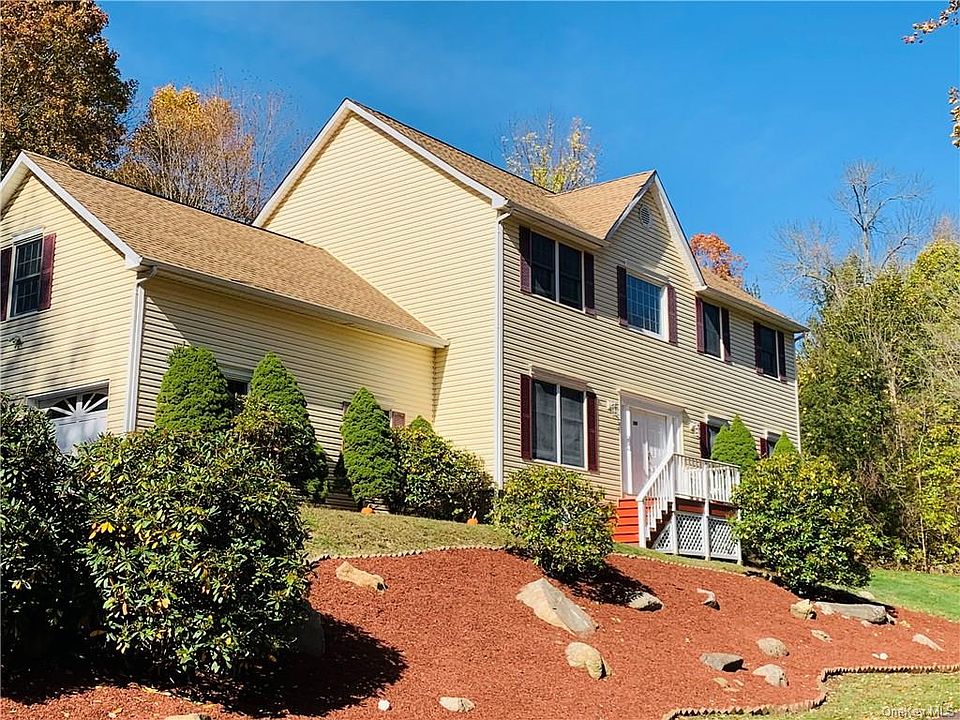 Sunny 4 BR/2.5 Bath Center Hall Colonial Built 1993 set in Wooded Great Nature ! Yet only 50 min. from Manhattan, 2300 SQFT. offers spaces for work, relaxation, entertainment, and outdoor living. Convenient to Highways, Downtown, Schools, Bike Path & Trail, Parks, or Fishing in Lakes and Reservoir. Beautiful Hardwood Floor Throughout. Renovated Modern Eat-in-Kitchen, with Double-Side Fireplace from both Breakfast Area & Family Room, SGD to 14X 22 Large Deck, MBR/WIC , MBTH/ Jacuzzi/ shower/ Skylight , 2-Car Attached Garage, Bonus extra Large Storage above Garage with easy access, Full Unfinished Basement. New Roof 2013 Basic STAR Exemption $1863 NOT Included in Taxes.