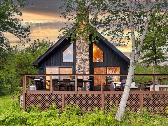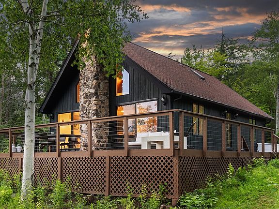 THIS is the contemporary home on the water that you have been looking for! This hip 3-bedroom, 2-bath gem on Long Bow Lake offers the perfect blend of modern living and natural beauty. As you step inside, wood floors and an airy open layout greet you, with sliders and expansive windows framing breathtaking all season lake views.