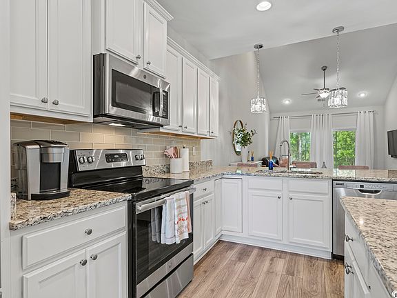 - Features: Breakfast Bar, Kitchen Island, Pantry, Stainless Steel Appliances, Solid Surface Counters