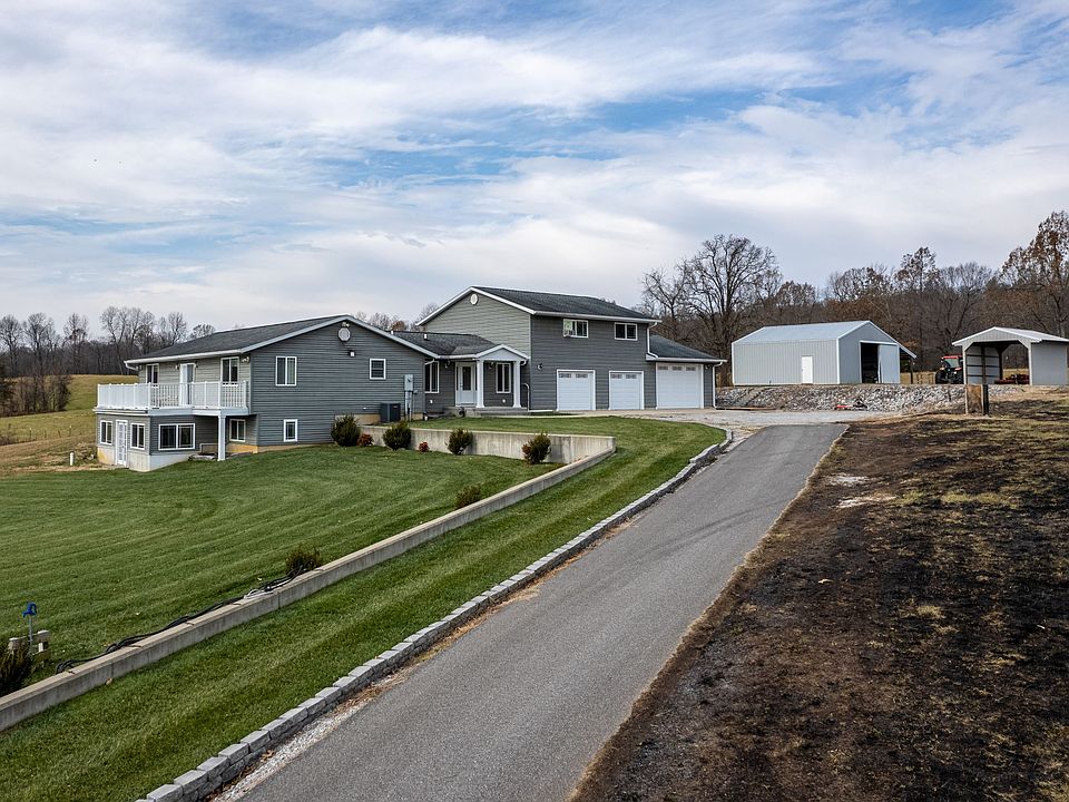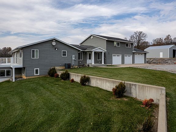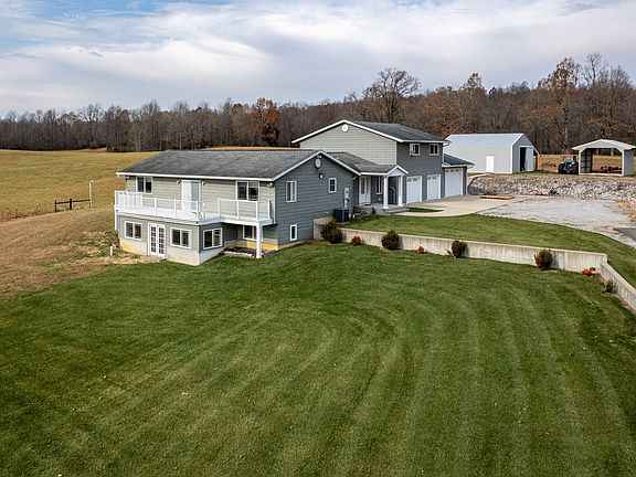 Beautiful home in a rural setting surrounded by scenic views! This home has 3,689 square feet of living space with three bedrooms and 2.5 bathrooms. It has a spacious living and kitchen area with a dedicated dining room and an elevated back deck overlooking rolling pastures. The basement is fully finished with two bedrooms, a living and dining area, and an enclosed patio. It has an attached two-car garage with additional storage, a work area, and fully finished guest quarters. A detached metal building and storage shed provide plenty of room for farm equipment. A large 3.5+/- acre yard surrounds the home with landscaping and a paved driveway. The farm has a diverse blend of habitat types with a gently rolling topography. There are 44.5+/- acres of pasture with fencing, cross-fencing, and multiple gates throughout. The pasture is ideal for livestock and hay production but could easily be converted to tillable acreage for additional income and plenty of food for wildlife. The farm provides plenty of deer and turkey hunting opportunities and has several ideal areas for food plots. The timber is a blend of softwoods and mast-producing hardwoods with areas of dense security and bedding cover throughout. A rock bottom creek flows through the southern end of the property and is a major travel corridor for wildlife in the area. If you're looking for a scenic property with a beautiful home in a quiet rural area, give us a call today and schedule your private tour!
