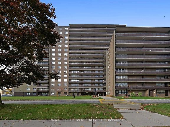 Large 1340 sq. ft Corner Unit with 2 Balconies with south & west views. This Highly Desirable Lower Level unit allows you to by pass the elevator and take the stairs! Clean & Spacious 3 Bedrooms, 2 Upgraded Full Baths. Completely Renovated Kitchen, appliances replaced. Electrical panel replaced with extra plugs on dedicated circuits provides convenience and safety. Closet doors replaced. Locker and 1 underground parking included. Maintenance fees includes Heat, Hydro, Water, Cable TV, Internet. This mature building is located to many major amenities: Steps to TTC transit out front (future line #7), GO station, Metro Grocery & Plaza, Shopping, Medical Offices, Schools, Parks, Playground, Close to lake, Scarborough Bluffs, Green space and places of worship[. Building amenities include an outdoor pool, gym, visitor parking, and Party/Recreation Room.