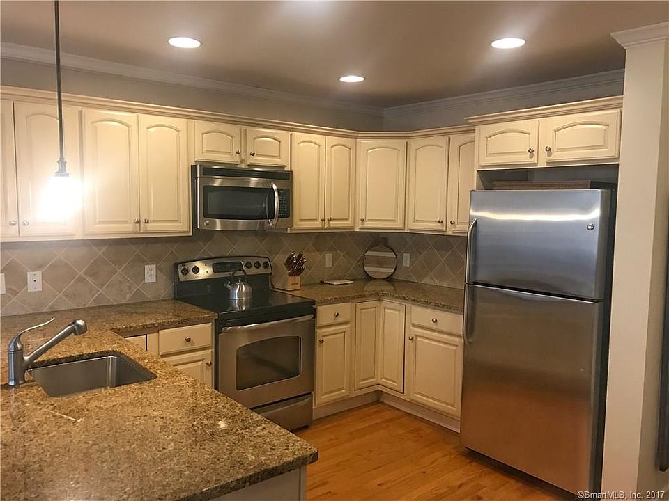Bright and fresh 1 bedroom unit has been meticulously maintained and is set on the third floor of this 3 floor building with elevator. The open floor plan includes a kitchen with granite counters, abundant cabinetry, stainless steel appliances and hardwood floors. The dining room and living room flow directly off the kitchen which makes entertaining a breeze. Open the door to the balcony and appreciate the proximity to the water. Careful reconfiguration makes the master bedroom private and peaceful and the spacious walk-in master closet features organization to maximize storage. In the basement, a large 10x10 storage unit is provided for extra storage. Gas heat, central air, well-kept and welcoming entry plus freshly carpeted hallways demonstrate the careful attention to detail throughout this complex. What an opportunity to enjoy easy living - just close the door and go anywhere without a care! Convenient to beaches, train, shopping, restaurants and everything Milford offers!