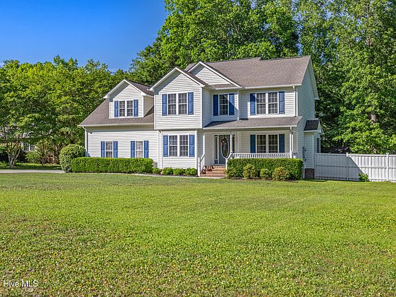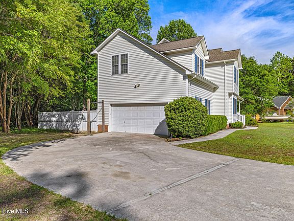 This spacious coastal gem is ready for new owners! If you are looking for prominent home on a large lot in the highly sought-after water access community of New River Plantation, don't miss your chance to snatch this one up. Just minutes from the ICW , North Topsail Beach and Camp Lejeune back gate, this 3 bedroom, 2.5 bath home with large bonus room has endless opportunity for entertaining. Upon entering the home, you will find the spacious living area with gas-log fireplace. Relax in your Carolina room just off the living room with a cup of morning joe, or an evening beverage as you look upon your large entertaining deck and private fenced yard, complete with a dreamy electric-powered shed and treehouse. If you prefer to entertain inside, gather guests in the eat-in kitchen while cooking in this upgraded kitchen with gas-stove, quartz countertops, glass tiled backsplash, and stainless appliances. The double-door pantry has more than enough space to accommodate all your supplies! The formal dining room is located just down from the kitchen with a large window looking out to the large front yard setback far from the street. Downstairs you will also find the half bath and laundry room, leading out to the 2-car, epoxy floor covered garage, lined with fishing hooks on the ceiling for quick access on boating days!