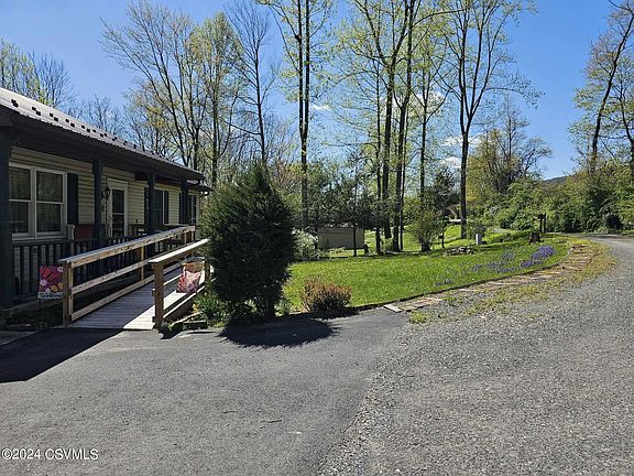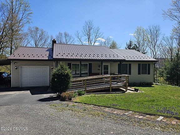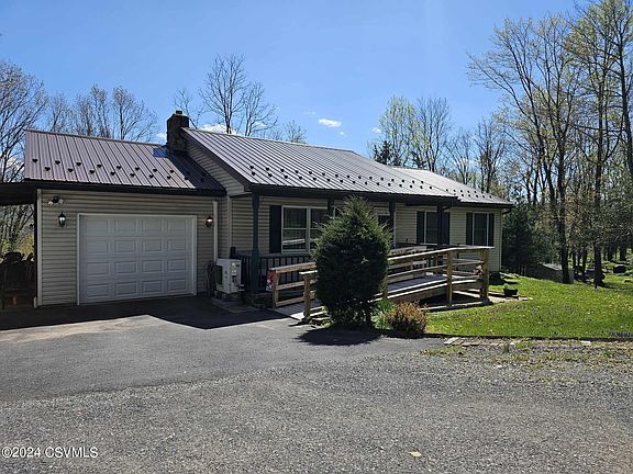 Secluded and private, this spacious Ranch home is situated at the end of Mikalonis Road with a panoramic view of mountains and valleys. Home has a lovely open floor plan with 2 full sized bedrooms to include a master bath in the master bedroom, a open kitchen with breakfast bar, dining area that leads thru sliding glass doors onto a deck overlooking the valley and mountains. Living area is open with cathedral ceiling and propane fireplace. Ample closet space to include kitchen pantry. wheel chair accessible, and stainless steel Kitchen Aid refrigerator and range are included. Lower level is full with 3/4 bath and washer. First floor bathroom has washer/dryer combination which is also included in sale. Home has a 1 car attached garage along with a carport all sitting on 1.759 acre
