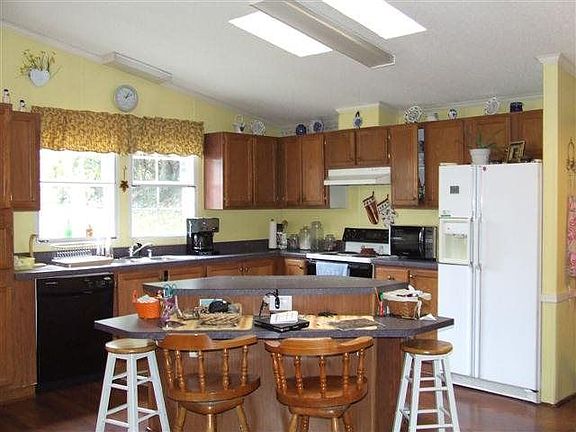 Lovely 3 bedroom 2 bath on approximately 5.5 acres with frontage along White Oak Creek. Vaulted ceilings from open great room featuring skylights over kitchen island and gas log fireplace in family area. Vaulted ceilings through separate dining and living room into master bedroom & batn. Master Bath features garden tub with dressing area & double vanity and separate shower & large linen closet and walk-in closet. White Oak Creek runs the length of property with lovely second possible building site and picnic area. End of road privacy and creek frontage! Survey recommended.