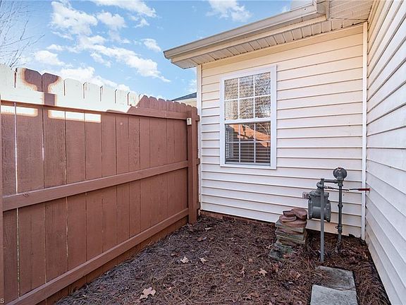 Great opportunity to be part of the Miller Pointe Townhome community! Relax on the private, fenced patio while the HOA takes care of the landscaping, exterior home maintenance, roof, gutters and more. Inside the home, a spacious foyer leads to the kitchen, dining & living room, all under a vaulted ceiling. Each of the 3 bedrooms is uniquely spaced away from the others giving privacy to family and guests. All bedrooms and the hall bath are freshly painted! The 2-car garage has a built-in workbench and is heated & cooled for year-round comfort. Off of the patio is a secure storage room with shelves that remain, as well as the kitchen refrigerator and washer & dryer. Mount Tabor High School district and conveniently located between Reynolda Rd & Robinhood Rd, near Wake Forest University, Sherwood shopping & dining, Polo Park and only minutes to downtown.