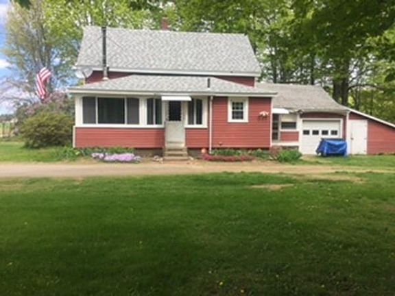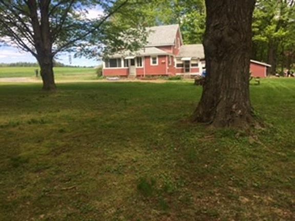 Old farm house surrounded by farm land, nice houses, woods, and sunsets to the west. This home needs a make-over, but it is the property that deems this house a candidate. Great side yard for games, fun, activities. Back woods for hiking, forts, nature. The heating system is oil forced air, with a wood furnace for supplemental heat. First floor bedroom. Newer roof on main house. Some vinyl windows throughout. Be careful to keep the cats in the house.