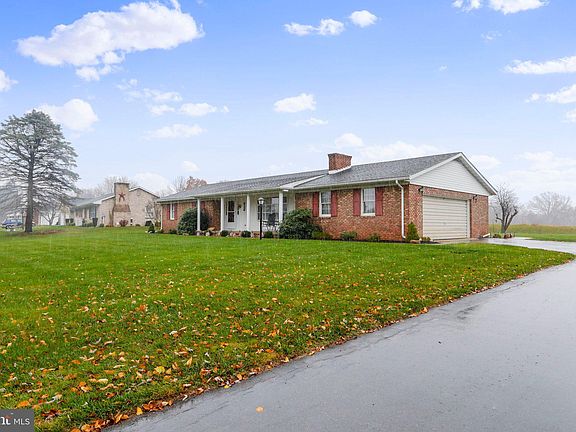 Beautifully maintained brick rancher right over the MD line in Falling Waters! Featuring 3 bedrooms, 2 full baths, and situated on 0.69 acres. Main level offers a living room with LVP flooring and wood-burning fireplace. Eat-in kitchen with ample cabinetry and table space, dining room area. Primary bedroom with attached bathroom. Laundry. Partially finished basement with entertainment room, pool table, built-in bar, fireplace with wood-stove insert, and Bilco doors. Plenty of parking with the 2-car attached garage, driveway, separate pole building with electric and 2 additional parking spaces. Nice backyard patio and storage shed. There is a hook up for an above ground pool. Newer heat pump. Close to C&O canal and Potomac River.
