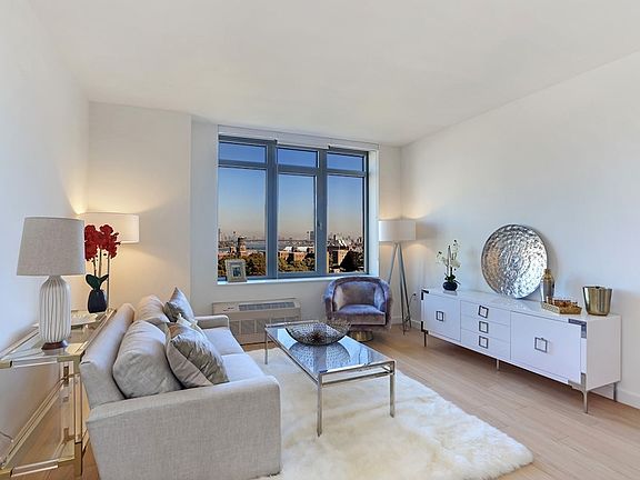Prepare to be captivated by this exceptional 2-bedroom, 2-bathroom residence - an absolute must-see! Oversized windows usher in an abundance of natural light, and majestic views of the Manhattan skyline creating an inviting and vibrant ambiance. The refined flooring and sophisticated finishes throughout exude an air of modern elegance, ensuring you immediately feel at home.