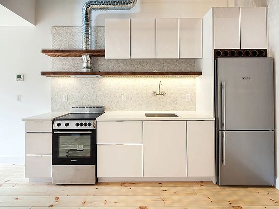 Experience the definition of rustic elegance at 163 North 6th st, where contemporary brilliance meets ancient European charm. Live within the walls of one of North Williamsburgs oldest landmarks, the former St. Vincent De Paul Church that has been masterfully restored and converted into authentic loft apartments with its extraordinary beauty intact. Here, modern details and state-of-the-art finishes blend flawlessly with expertly salvaged materials, including original exposed brick, reclaimed Heart Pine pillars and beams, arched stained glass windows, custom steel work and exceptional quirks around every corner. Sprawling layouts, some with soaring 20 foot ceiling heights, and matchless distinction create incredibly rare and unique living spaces not found in NYC today. Enter through the towering building entry and make your way down dramatic hallways, adorned with dark leather walls and inlaid wood floors made from 100-year-old shipping boxes. Inside each loft duplex you will find reclaimed wooden staircases leading to the mezzanine, with sliding wooden doors, catwalks made of distressed cast iron and stunning en suite bathrooms. The custom designed open kitchens contain Caesarstone countertops, impeccable penny tiled marble backslashes, Kingston Brass fixtures and boast a gourmet appliance package of top-of-the-line appliances with Bosch washer/dryers, Fisher-Paykel dish drawers and stainless steel Bloomberg appliances. Each residence, unique in its own right, contains bathrooms with reclaimed brick walls, pressed tin ceilings, steam showers and custom built vanities with imported stone. Over-sized, arched windows create bright, sun-drenched rooms throughout, and wide plank hardwood floors lend a loft-like feel to each spectacular room. 163 North 6th is located around the corner from the L train at Bedford Avenue, only one stop outside Manhattan as well as countless bars, cafes and boutiques in one of NYCs most desirable areas. Transport yourself back to the prohibition era in time for cocktail hour with oysters, infused gin and debonair bartenders at Hotel Delmano. Snag some one-of-a-kind vintage attire at Antoinette, catch a movie at Williamsburg Cinema or head over to 35-acre McCarren Park, which has dog runs, a public swimming pool, fields for soccer and baseball and a Green Market on weekends.