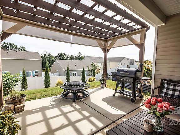 Your search for a "like new" open ranch style home may be over. This clean, move-in-ready home is a show stopper. Luxury Vinyl Plank flooring leads you to a huge open main living space, that's made warm and cozy with its decorative stacked stone accent wall surrounding the gas log fireplace. The kitchen is a cook's and entertainer's delight with a gas range, large island, granite counter tops, and stainless appliances. Your cute breakfast nooks leads to a fabulous covered rear patio, complete with a classy pergola and fenced rear yard. The secondary bedrooms are spacious, perfect for guests or the home office. Please inquire of the listing agent regarding the seller's assumable fixed mortgage loan. Home is located conveniently near the neighborhood mailbox, playground, and pool. Full CPI security system conveys! Highly ranked Mooresville Graded Schools! And a low rate assumable mortgage for those who qualify.