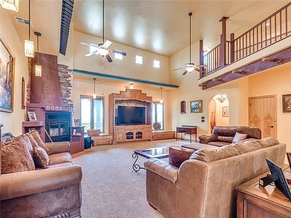 Beautiful custom home on 5.02 acres. Gorgeous through-out. Stone, granite, custom woodwork. Two story great room with loft, balcony. Elevator! Geothermal, 12 camera security system. Kitchen to die for! With granite, stainless appliances, island, so much storage. This home has a game room with fully equipped kitchen with granite island. Separate theater room. Exercise room with mirrors. Safe room/bunker. Separate garage for all the big toys with an entrance to mudroom/shower/storage area. Master suite with sitting area, balcony, huge walk in full cedar closet - bathroom has double sinks, large walk in shower/Roma steam room, hydro-therapy soaking tub.Acreage is wooded. Shop is 2400 sq ft w/ electric/water. Barn.