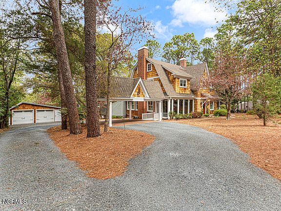 Nestled in the heart of downtown Southern Pines, this completely renovated Dutch colonial offers a storybook setting. Step inside to discover 4,000 sq. ft. of historic charm flawlessly integrated with modern functionality and design. 5 bedrooms, 3.5 bathrooms, private corner lot, screened porch, oversized deck, detached 2-car garage, and porte-cochere. Natural gas, original heart pine hardwood floors, doorknobs, and push button switches with updated wiring; new Pella sliding glass doors and architectural windows with retractable screens. Complete kitchen renovation with custom cabinetry, Cambria quartz countertops, farm sink, porcelain tile backsplash and Bertazzoni 5-burner gas range. Butler's pantry with butcher block countertop, wine refrigerator, custom metal and barn wood storage unit, and built-in shelves. Top-floor master suite with exposed beams, built-in cabinetry and closets, and stunning master bathroom with Italian marble tile flooring, Euro slipper bathtub, private water closet with exposed brick, and walk-in tile shower. Formal dining room, 2 stairways, brick sunporch with side entry, living room with natural gas fireplace, office, laundry room with Whirlpool washer and dryer. Finished basement boasts two rooms offering endless possibilities. Perfect man-cave or ladies lounge! Basement includes a huge unfinished storage space with built-in cabinets and countertops, large concrete laundry tub, commercial-grade dehumidifier, and tankless water heater. Sidewalk access to restaurants, bars, shops, parks, library and all downtown living has to offer. Beautiful historic park with playground, golf practice area and green space around the corner. Whole-house Generac generator, whole-house surge protector, whole-house air filtration system, termite contract through Terminix, and Blanton's Semi-Annual Maintenance Program for HVAC, Electrical & Plumbing, ensuring there is no deferred maintenance.