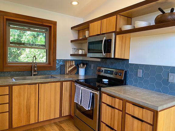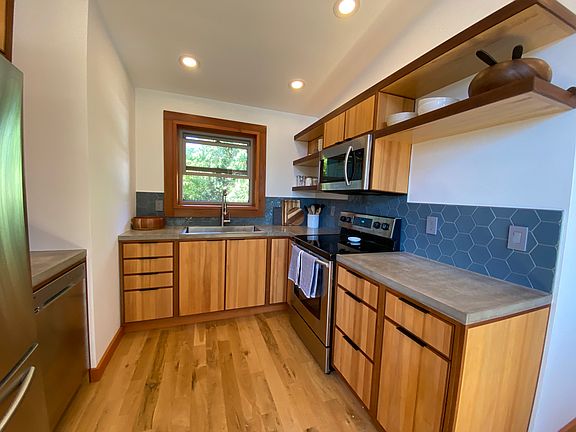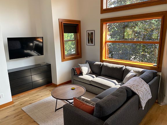 Brand new unit for rent at Cabin's North in downtown White Salmon. Thoughtfully designed and built with care. Each unit is fully furnished with linens, stocked bathroom and full kitchen. Although this is a one bedroom with a queen bed there is a bunk nook with one queen and a twin below. For mid-term renters the bottom bunk could potentially be removed to create a work from home space. This cabin has no shared walls. Bedroom is equipped with blackout shades. There is a private backyard with lounge chairs and a BBQ. ** Price will vary in the summer season then what is currently reflected. Please inquire if curious. Month to month terms.