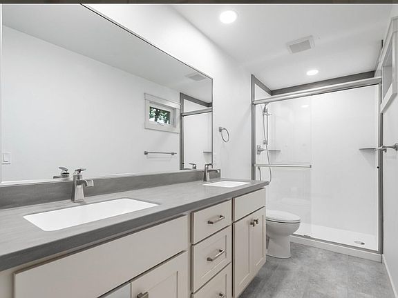 5 bedrooms, 3 down egress. 2 Family rooms with fire places , up stairs Fire place is Gas. Main living room hardwoods, with large bay window. . Newer kitchen counter tops , all stainless appliances stay. New hardware and lights thru out home. Lots of new light fixtures. Great walk out to trek deck off the kitchen sliding door. Master bedroom on main floor. 3 bed down egress. 2 bathroom down total remodeled, w walk in shower. X storage room down. Down stairs also has kitchenette set up, could be mother in law set up. Down stairs new carpet. Yard; Fenced , mature trees for shade. Raised garden beds. New paint front of home, Brand new roof 9/2020. New garage door10/2020 Shed back yard. Home sits across from beautiful city park. Not a lot of traffic on this street at all - private. Motivated sellers.
