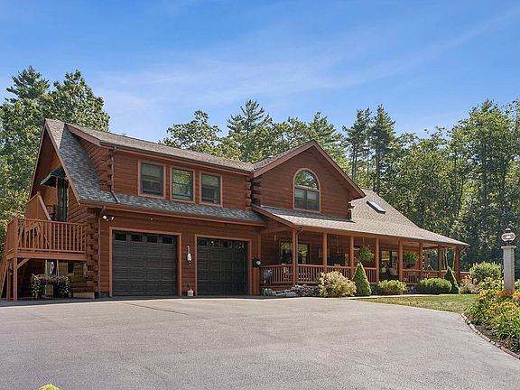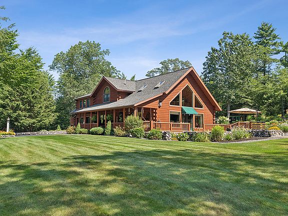 OPEN HOUSE - SEPT 6., 10AM-NOON. Discover a truly one-of-a-kind retreat in the heart of York County, Maine. As featured in Log Home Living magazine, this custom log home in North Berwick offers 3,037 square feet of beautifully crafted living space set on 3.68 secluded, park-like acres. Every detail reflects meticulous care, from the heavy timber rooflines to nearly a quarter mile of hand-stacked stone walls that terrace the grounds and frame gardens, patios, a fire pit, and an above-ground pool.