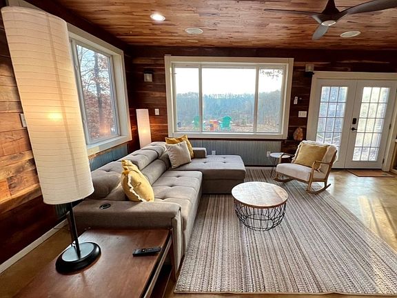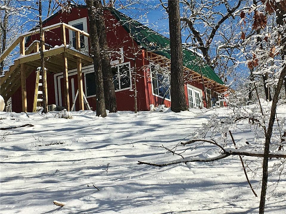 Amazing opportunity to own a super efficient & private fully furnished home on a magnificent 6.74 acres near Beaver Lake. Spectacular views, rock formations, 3 wet weather waterfalls, inground wading pool & heated floors. 816 sqft on main floor & 476 sqft on 2nd floor which is closed off & has a separate entrance & its own bathroom. 2nd floor designed to be easily converted to have 2 additional bedrooms or an apartment/BNB. Many spots for camping sites & great hunting. Only 3 miles to the Beaver Dam & 10 minutes to Downtown Eureka Springs. 3 mini splits. Perfect spots to rent camping sites to people who enjoy hiking. All appliances only 2 1/2 years old. Custom walnut shiplap throughout the home with oak ceilings. Steel siding with leaf guards on gutters. Tankless water heater has water softener as well.