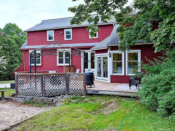 **OFFERS DUE 6/15 6PM - Versatile floor plan for this thoughtfully laid out 4 bedroom, 2-1/2 bath home in a beautiful country setting. Gorgeous wide plank hardwood floor throughout this spacious cape that lives like a colonial in this deceivingly large home. Kitchen has maple cabinets, Corian countertops with breakfast bar and lots of natural light. Glass doors lead to large deck, perfect for outdoor entertaining. In the winter months cozy up to the fireplace in the adjacent sitting room on chilly days. Large front-to back living room has plenty of room for all to gather. Primary bedroom suite located on the first floor would also be an option for an in-law or au-pair suite. Large walk-in closet, adjacent sunroom, and 2nd floor loft style office provide endless opportunities for home office, gym, or reading nook. Upstairs are 3 spacious bedrooms and second full bath. Amenities include 2 car attached garage and central air to enjoy on hot summer days ahead! Storybook setting with beautiful stone walls and mature plantings. Loads of storage including large shed. Book an appointment today!