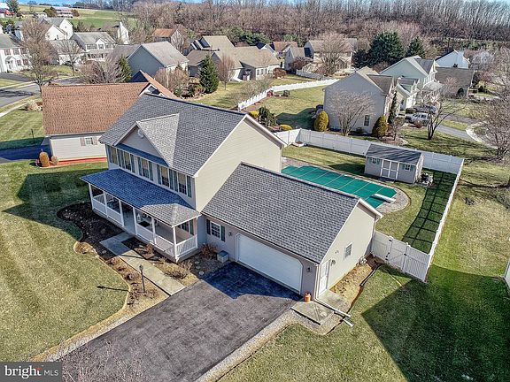 This 4bedroom, 2 1/2 bath Palmyra home is truly move in ready! Pride of ownership will be evident as you enter this Palmyra home located in the lovely subdivision of Orchard Hill Estates (no HOA fees). The 1st and 2nd levels have real hardwood flooring, an open floorplan, gas fireplace, kitchen with quartz counters, main level laundry, and more. Upstairs you will find 4 generously sized bedrooms including the primary suite with large walk-in closet, and an on-suite bathroom with seperate tub and shower. The basement is finished and allows extra space for gatherings or hobbyists. Head out to the backyard to find your own summer oasis. Large low-maintenance salt generation chlorine pool with a shallow end and deep end for diving. This home is perfect for entertaining. New roof (2022), new furnace (2018), new water heater (2018), new pool liner (2022)! There is even electric to the shed by the pool and a white vinyl privacy fence. Move right in and be swimming in your new pool in no time!