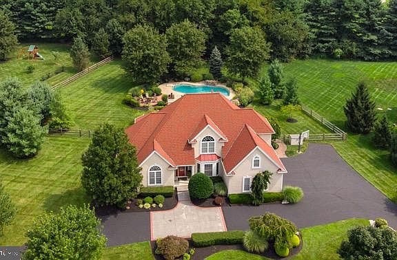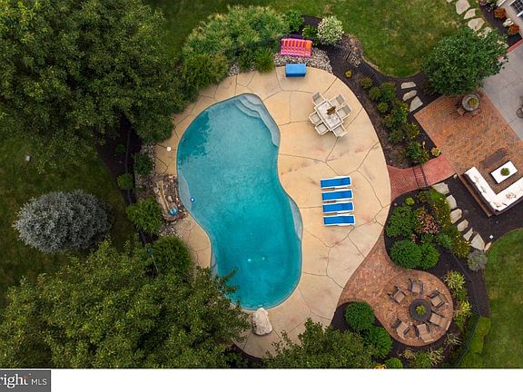 Look no further for an awesome corner property on a cul-de-sac in Solly Estates, Ivyland & the Council Rock School District boasting a modern floor plan your family will love. This home has an amazing yard w in-ground pool, generous 5 bedrooms, 5 full baths & so much to offer. Be welcomed home both outside w the gorgeous landscaping surrounding the circular driveway & inside w a covered entry, glass front doors and details & finishes to appreciate. Main floor includes a 2 story great room w custom fireplace & large windows flooding the home with natural light, a spacious dining room w wainscoting, a bay window & custom built in bar/buffet, a nicely appointed kitchen w/ granite, breakfast room & newer stainless steel appliances. Also on the first floor is a beautiful master bedroom w 5 piece master bath, 2 walk in closets & fireplace, as well as a 5th bedroom w its own full bath, currently being used as a den, and a large laundry room. 2nd floor includes 3 large bedrooms - princess suite w private full bath, & a jack-n-jill set up for the 2 additional bedrooms featuring vaulted ceilings & a sitting room, and an optional 2nd laundry room. Beautiful finished walk out basement w almost 9' ceilings & so much space to accommodate a family room, an work/hobby space, or even another bedroom, and full bathroom. Custom trim, tray ceilings & built-ins are throughout the house. The yard is fully fenced, great for pets, and pool is separately fenced as well. Outside patio includes a fire pit, surround sound & over looks the beautiful heated, in ground pool w waterfall & will certainly be enjoyed during summer days/nights & entertaining. Absolute move in condition! Geothermal Heating/Cooling system is very economical to run. Schedule your tour...... you won't be disappointed.