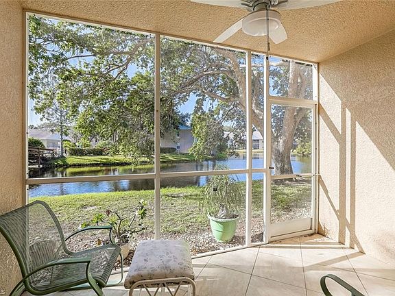 An amazing southern exposure lake view with this Pebble Shores first floor 2/2 condo. A newer AC, an updated guest bathroom and a walk in closet in the master bedroom. New tile on the diagonal in the living room and kitchen, newer carpet in the bedrooms. You are just steps to the pool and clearly have the best water view in the development. The community has a lending library, clubhouse and community pool/spa. Low fees and close proximity to 3 award winning beaches makes this unit a one of a kind. This location gives you the best Restaurants, Shopping at Mercado, Waterside and Coconut Point and easy access to 75 for the airport from North Naples.