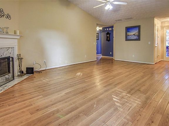 Move in ready complete with fenced back yard and corner lot! This home offers a large kitchen area open to the dining and living room and its own cozy fireplace. Large master has his/hers closet and sinks as well as a large soaking tub and separate shower.