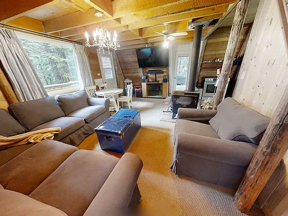 SHORT TERM RENTALS ALLOWED - NO SPECULATION TAX! The best priced cabin on the ski hill, and quick possession available. A must see A-frame style, wood shake siding, ski in/ski out cabin is located in the heart of the MT. Baldy resort. Enjoy your cozy hot tub on your private patio or relax and melt by the warmth of the woodstove. Beautiful wood accents, large windows and an open floor plan on the main floor creates the best cozy cabin vibes. The upper floor sleeps 4 but there is room for more if the living room is utilized. Air BNB your home to supplement your mortgage, place a long term tenant or live full time - The opportunities are endless. The mountain boasts a double chair, a quad chair, T-bar, Magic Carpet, backcountry skiing/skinning, snowshoeing, frisbee golf, hiking, biking, chair rides and more! Enjoy this beautiful mountain in the winter with plenty of champagne powder and mild summers with fresh air. Baldy Mountain is open in the summers for hiking, mountain biking, volleyball and more!