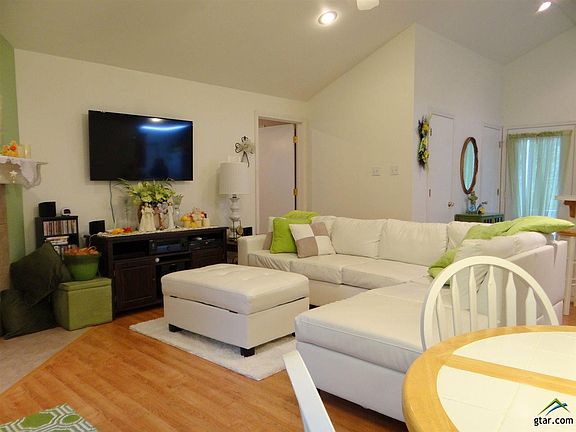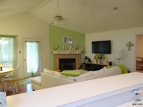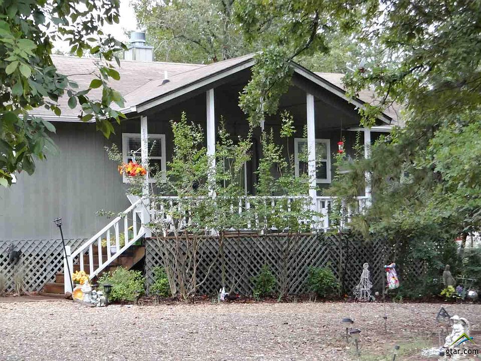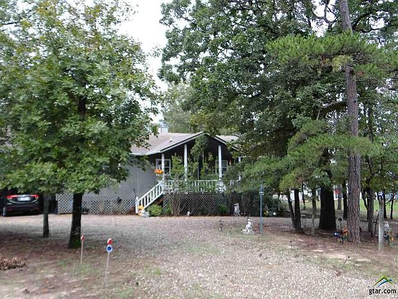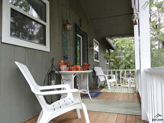 Light and bright open floor plan 2BR-2BA on wooded lot in Holly Lake Ranch. Living/dining/kitchen features vaulted ceiling, WBFP, laminate flooring and good counter/cabinet space + eat in bar in the kitchen. Split bedrooms and each bedroom has private bath. Extra large master bedroom en suite has double lavatories and huge walk-in closet. Full size laundry room with cabinets. Covered front porch and covered back deck for outdoor enjoyment. Pretty landscaping and circular driveway. Storage closet at end of concrete floored carport plus detached storage building.