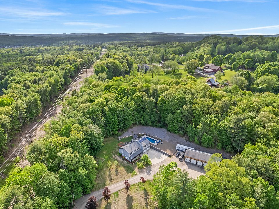 PRICE REDUCED AGAIN! SELLERS READY TO SELL! Set on 4.3 acres of serene, private land, this unique property offers a perfect blend of peace and modern convenience. Enjoy the benefits of sustainable living with brand new solar panels, ensuring a consistent and efficient monthly energy cost. Whether you're relaxing by the inground saltwater pool, working in the versatile 5-bay garage, or simply enjoying the quietness, this property has something for everyone. The custom-built home showcases exceptional craftsmanship and rustic charm, filled with timeless details. The heart of this home is the kitchen, designed with a vaulted ceiling and a granite-topped custom island featuring a built-in 6-burner gas stovetop and bar seating. This space flows effortlessly into a large dining room, making it perfect for entertaining. The living room features a striking floor-to-ceiling fieldstone hearth w/ gas stove, complemented by reclaimed barn wood walls and wide pine floors that run throughout the home. The primary bedroom is a true retreat, featuring double walk-in closets and a private ensuite bathroom with exquisite tile work. Three additional bedrooms on the main floor offer plenty of space for family or guests. A full bath with a convenient laundry area adds to the home's functionality. The lower level includes a versatile guest suite with its own entrance, offering a bedroom, living room, office, and bath—ideal for visitors, extended family, or a rental. The detached garage features four large bays, accommodating a range of uses from vehicle storage to workshop space, along with an additional storage bay for even more utility. The driveway provides an elevated approach to the home, offering privacy and stunning views. For those concerned about maintenance, practical solutions are available to ensure year-round accessibility. This home is just five minutes from the center of Springvale, offering the perfect balance of peaceful retreat and convenient access to local amenities