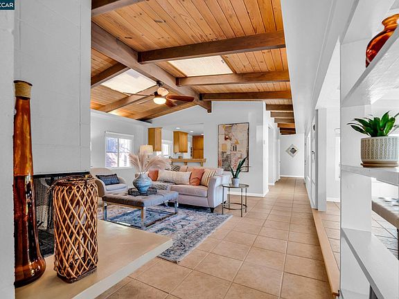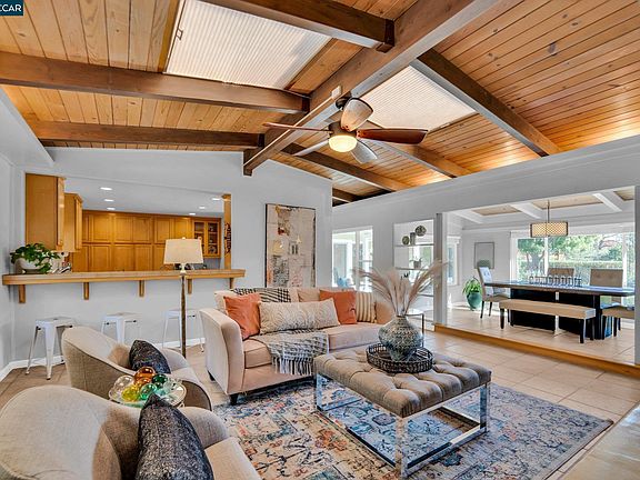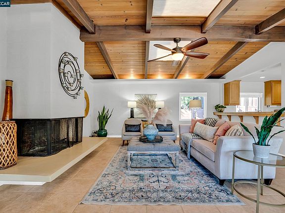 Gorgeous Eichler style home on a .30 acre lot bordering Lafayette, w/ tranquil views of Mt Diablo & the surrounding hills.The bright & airy living room boasts vaulted wood ceilings, 2x skylights, natural light & framed by a floor to ceiling fireplace.The inviting dining room enjoys large windows, beamed ceiling & picturesque views.The kitchen offers a center island, tile countertops,SS appliances & recessed lighting.Enjoy a bonus/family room w/ soaring ceilings & an adjacent full bath.The spacious primary bedroom offers a panoramic window w/ views & ensuite bath w/ a 2x vanity.Find 2 additional bedrooms & a hall bath.The landscaped front yard features a sizable patio surrounded by mature trees, greenery & expansive views.Features include radiant heating throughout, attached 2 car garage & elongated side driveway for additional parking. Walkable to the elementary school & minutes to shopping, dining & K-12 schools.