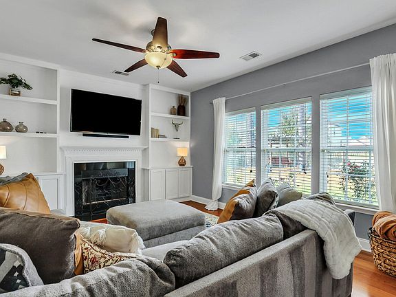 Discover the ideal 4-bedroom home priced under $370,000 right here! Nestled in Foxbank Plantation, this impeccably maintained home offers a prime central location just off HWY 52, providing easy access to Summerville, Goose Creek, Charleston, the airport and more!Step inside this charming residence featuring 4 spacious bedrooms, 2.5 baths, a 2-car garage, and a sprawling large wooded lot. Freshly painted in 2022, the home welcomes you with beautiful hardwood floors that flow seamlessly from the main entry to the cozy sitting room, elegant living room with custom built-ins, and a convenient half bath. The large eat-in kitchen showcases lovely ceramic tile flooring, stainless steel appliances, custom backsplash, and updated light fixtures.The open layout provides ample space for entertaining or relaxing by the fire. Enjoy the large screened-in porch off the dining room and an extended outdoor slab overlooking the nearly quarter-acre lot adjacent to a wooded area for added privacy. Custom additions like a drop zone by the front door and an extended closet under the stairs offer practical storage solutions. Upstairs, the batten board walls lead to the expansive master suite with a tray ceiling and abundant natural light. The private en-suite boasts a sliding barn door, dual sinks, a garden tub, a stand-up shower, a walk-in closet, custom mirrors, and shiplap accents. Three more sizable bedrooms with generous closet space and custom light fixtures await, along with a spacious laundry room providing convenient access to all rooms. This home seamlessly blends luxury and functionality, offering turnkey readiness for its new owners. Foxbank is a master-planned golf cart community with exceptional amenities including 2 pools, a pavilion, a dog park, kids' parks, a fitness center, its own fire department, and convenient access to restaurants and shopping. Don't miss out on your opportunity to get in to this perfect home!