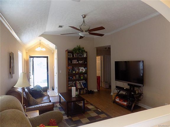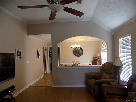 This patio home is set up with a split floor plan. Two bedrooms are located towards the front of the home and share a full hall bath. The main bedroom is towards the back of the home and has a trey ceiling with fan, walk in closet and attached bath. The attached bath has a garden tub, large separate shower, double vanities and built in shelving to one side of the tub for towels. The living room is just off the foyer, sits between the bedroom areas and has a raised ceiling and laminate flooring. Behind the living room is the dining area, separated by a wall with a large opening. The dining room has a trey ceiling, chandelier, window overlooking the side of the home and the laminate flooring running through here as well. The kitchen sits behind the dining room and has cabinets along three walls, a smooth surface electric oven, built in microwave and dishwasher. The laundry closet is on the opposite wall and is just before you get to the back door. Out back is a covered patio area and a fully privacy fenced yard, including a detached storage shed.