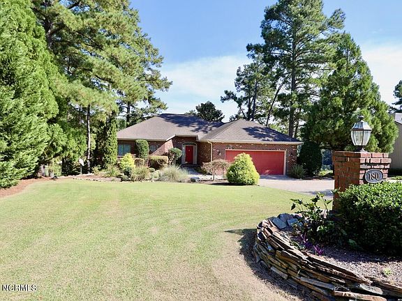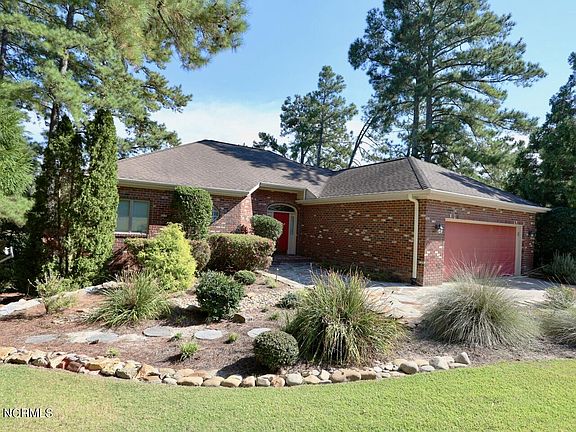 If you are looking for the best golf front views in Pinehurst, this fantastic custom built home is located on the 6th green & 7th fairway of Pinehurst's #3 golf course. A Transferable Charter Membership is available with the buyer to pay transfer fee. The panoramic elevated views are stunning. From the moment you walk in ihe front door you see golf views EVERYWHERE! The main floor open plan with hardwood floors and nine foot ceilings, offers a large living and dining area, a half bath, a cozy eat in breakfast nook, plenty of space for bar stools at the breakfast bar, a Carolina room with the best views EVER and a deck which is the perfect place to sit and have a cup of coffee while watching the golfers putt or tee off! The Master Bedroom is on the main level and has a large walk in closet, beautiful granite counter tops and a walk in shower and separate tub. The views from here are also breathtaking with french doors leading out to the deck. The walk-out lower level has an open living and kitchen space, two large bedrooms, one full bath and more storage than you will ever need! The lower level golf cart garage makes it easy to get to the course and the large cedar lined closet is perfect for any type of storage.The lower level screened in porch offers even more entertaining space and the patio is a great place for grilling! Recent upgrades include...2012 installed new cabinets, sinks, lighting and granite in all three bathrooms and replaced main-level heat/ac unit. 2013 installed pot rack in kitchen and screened in the lower level porch. 2014 installed new black granite in kitchen with new large sink and Samsung range. Also installed Rubbermaid Fastrack wall organizers in garage and epoxyed garage floor and added a new chest freezer and refrigerator/freezer in garage. 2016 replaced both water heaters. 2020 painted interior of house and garage in Antique White and installed new carpet in master bedroom. Come home to 180 Ridgewood Road..you will never want to leave!