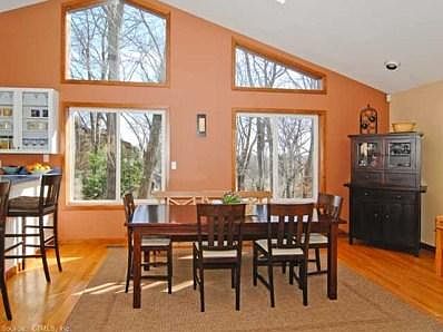 Nature surrounds you in this private, bright home. Enjoy the view of the woods and river from the many windows that surround the open living space. You feel miles away but you are just 3 minutes from town! (Add 400 SF of living space in the LL).