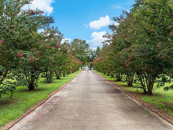 This exceptional property features a 2,335 sq. ft home with 4 bedrooms and 3 full bathrooms, nestled on approximately 36 acres of beautiful, versatile land. A long cement driveway lined with gorgeous crepe myrtles on both sides creates a stunning entrance to the home. The property includes an approximate 2.8-acre pond stocked with bass, brim, and catfish, complete with an air-conditioned dock overlooking the water, ideal for relaxing or entertaining. Additional improvements include a 1,232 sq ft shop with roll-up door, an additional storage building with a half bath, and a carport suitable for camper or RV parking. The land is enhanced by planted pine timber just over 23 years old, a small blueberry orchard, fig and persimmon trees, and established grape vines, offering beauty & privacy.