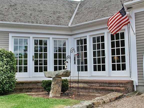 South Dartmouth- Landmark residence located on enchanting 3 acre home site, framed by a picturesque spring fed pond. A peaceful retreat, accessed through a private community and long winding lane surrounded by natural beauty and tranquility, yet within minutes to Round Hill Beach and Padanaram Village. This extraordinary Williamsburg-inspired cape was designed w/symmetry and balance in mind, whereby four-season views and wildlife seem to unite harmoniously. Master craftsmanship is evident throughout; custom built-ins, 9ft ceilings, crown/dental molding, rich maple flooring, and arched window/door accents. Striking fireplace hearths add great character and warmth to the kitchen/sitting area and formal living spaces, which are open and fluid for entertaining. A lovely guest suite at the far corner of this home is perfect for extended family or live-in help. Truly, an exceptional setting and rare opportunity to co-exists with nature.