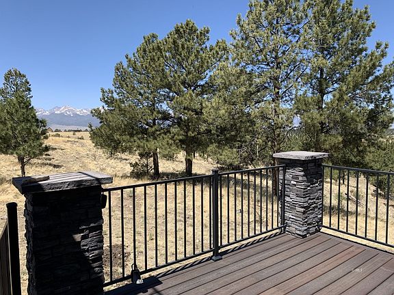 Privacy at the end of the cul-de-sac with plenty of pine trees, open meadows, and sweeping, fantastic views of the Sangre de Cristo mountain range. Beautifully remodeled in 2017 with designer features throughout. Exterior was totally redone with fire resistant Hardy Board and Sunset stone. Kitchen with a 4 burner JennAir oven/range with down draft, GE microwave, large Farm sink and no touch faucet, Kitchenaid dishwasher, and tile flooring. Living room with Acacia "tobacco road" flooring and Superior fireplace with blower. Dining area with Lopi propane freestanding stove. Custom Kitchler lighting throughout. Prairie design windows with metal clad on the outside. Surround sound. 24 x 32 garage/workshop with epoxy flooring. Back up Kohler generator.