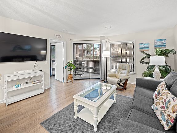 This 2 Br villa is located in Arrowhead Court inside Kingston Resort. It's located on the 1st floor. This adorable condo features a king bed en suite and 2 twin beds in the secondary bedroom and a fully stocked kitchen. Relax by the pool or take a quick walk across the boardwalk to the beach. You'll find tons of sunlight streaming through the primary bedroom windows and a sliding glass door leading you to a screened-in balcony porch. The lake is right there at your feet and the view is so picturesque it instantly tugs at you to sit down, grab a cup of coffee or cocktail, and just breathe. It features free parking and free high speed Wifi (400 Mbps). Discounted monthly rent available October - March only. Not interested in subletting to AirBnB. Kingston Resort is a 145 acre community on the beach. The gated entrance provides 24/7 safety and security in this family friendly environment. The community has a number of walking and biking trails around a series of small lakes and ponds and the ocean. Arrowhead Court is a subdivision within Kingston Resort. It provides a resort living with beautiful landscaping, a private swimming pool, and a winding sidewalk with a 5 minute walk to the beach. Includes all utilities. Free parking and free Wifi
