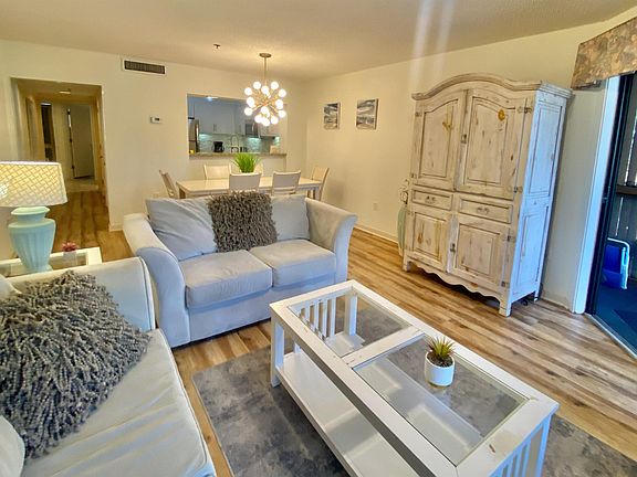 Very nicely updated two bedroom, two bath lodge on the first floor with an oversized 134 sq. ft. corner screened porch with great views. The foyer has tile flooring and shiplap white walls. There is wood look LVP throughout the entire property with tile in the foyer, kitchen, and bathrooms. The kitchen is updated with white shaker cabinets, granite counters, white stone backsplash and stainless appliances. The living room furniture has been updated along with the lighting. The lake, swans, and wildlife are visible from the large screened-in porch and the kitchen, living room, and dining area. Both bathrooms have granite top vanities and have full tubs with white tile surrounds. The AC manufacture date is 7/2011 and the hot water heater was installed in 2019. Great primary residence, second home, or rental option. Some resort amenities are only available through the Hilton on-site rental program.