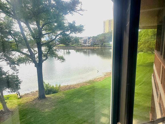 Beautiful and meticulously cared for two bedroom and two bath (B-floor plan) which overlooks the lake here on Kingston Plantation. 1 owner (original owners) with a detailed list of yearly upgrades available. Priced right! This is a special one. The master bedroom overlooks the lake through the bay windows, with adjustable plantation blinds. The master bathroom has an upgraded sink and cabinet and the shower has custom sandstone throughout. The living room has an new sleeper sofa, love seat and dining room and an entertainment center. The floors were updated in 2020 with new LVP throughout. The deck features double slider glass doors that overlooks the expansive full view of the lake and pool.