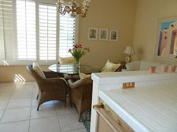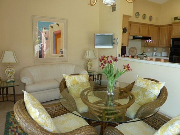 THE LAKES COUNTRY CLUB - Enjoy the beautiful view from this largely expanded and enclosed patio. A beautiful 3 bedroom, 3.5 bath home located on a quiet street with a swimming pool right next door. There is a private sideyard for entertaining or just enjoying a good book. The home is beautifully furnished and pride of ownership is evident. The perfect home away from home in our paradise at The Lakes Country Club. Golf cart available. $5,000 per month