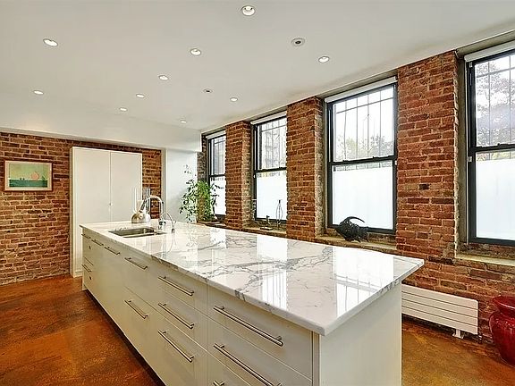 ULTIMATE LOFT, BESPOKE, CURATED, SICAF! Welcome to Authenticity. Glass , steel, concrete, brick, Industrial Open Loft in The Burg, Total W!! Biggest unit in Williamsburg! Massive 1st floor loft, open floor plan, fully updated renovation. 2200 sq/ft total, 1100 sq/ft per floor. 1st floor and basement duplex. 9' ceilings throughout. Commercial condo. so ideal for live/work or either or. Flexible space, high end fixtures, spa bathroom, big sauna, steam shower with body jets/rain shower head, street entrance for commercial store front opportunities. Prime location, in front of bridge and park. Tremendous foot traffic. Custom build out. TOP KITCHEN FLEX, Two Sub Zero fridges, 48" Viking Stove, double oven/convection, 6 burner and grill, double dishwasher drawers, double sink, filtered hot and cold water on tap, 11' Carrara marble island seating for 6, Sundrenched south facing windows, bathrooms outfitted in Duravit fixtures, Toto toilets, Kohler water tiles, Spac Pak Air Conditioning system, two new AO Smith hot water heaters, all recessed lighting on dimmers, radiators are all Runtal's all on separate thermostats. Two staircases, exposed steel, glass, brick and concrete floors. This is the best deal in the Neighborhood, 3 Blocks to Water and Domino Park, best restaurants, bars, shopping, stores and transportation options in the city.