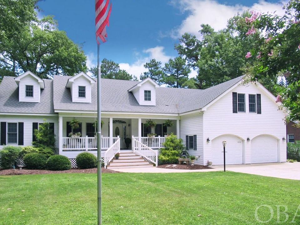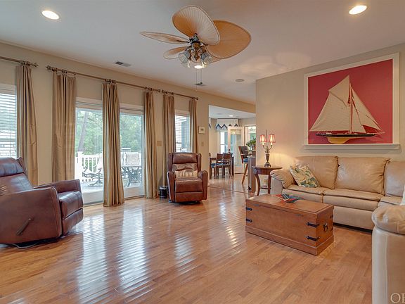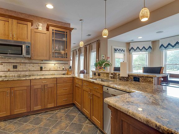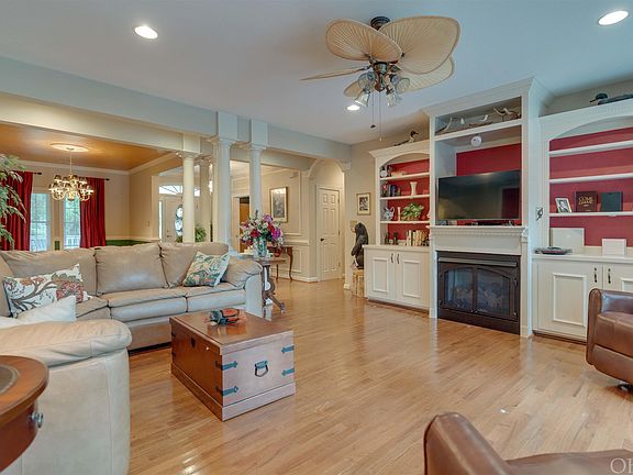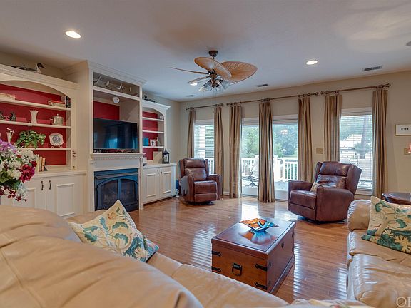 Beautiful canal front custom home built by Walt Construction. Open floor plan with a spacious first floor living room with built-in custom cabinets, newly remodeled kitchen with natural cherry cabinets, double oven, granite countertop, eat-in area, bar. Large dining room, office with custom cabinets, guest room with full bath, first floor master bedroom has a stunning new remodeled master bath with marble shower, flooring and fixtures. Relax and enjoy looking through the abundance of windows on the main floor with a wealth of natural sunlight, as well as enjoying the sunroom! You won't get tired of the lovely water views, boating, kayaking, etc that you and your family will have for years to come.  Upstairs there are two spacious bedrooms with a jack and jill bath. An additional room you can use for a den or family room with full bath, large cedar closet and tons of additional storage. Lets not forget the large game room with a stunning pool table over the two car garage. If you have been looking for a Southern Shores home that is ready for you, look no further!