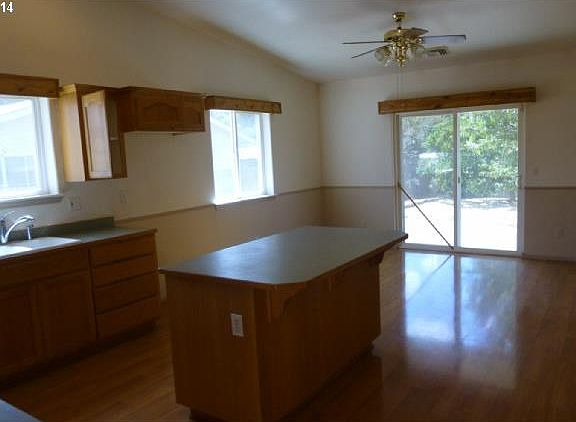 Nice sized home on low traffic street in small town Oregon. This home has lots of neat features: vaulted LR, DR, KT w/laminate flooring. Island KT; Dining area has slider to rear patio & fenced yard, trees & shed. RV parking behind the fence is an added bonus. Be sure to see this home quickly, as it may not last very long.
